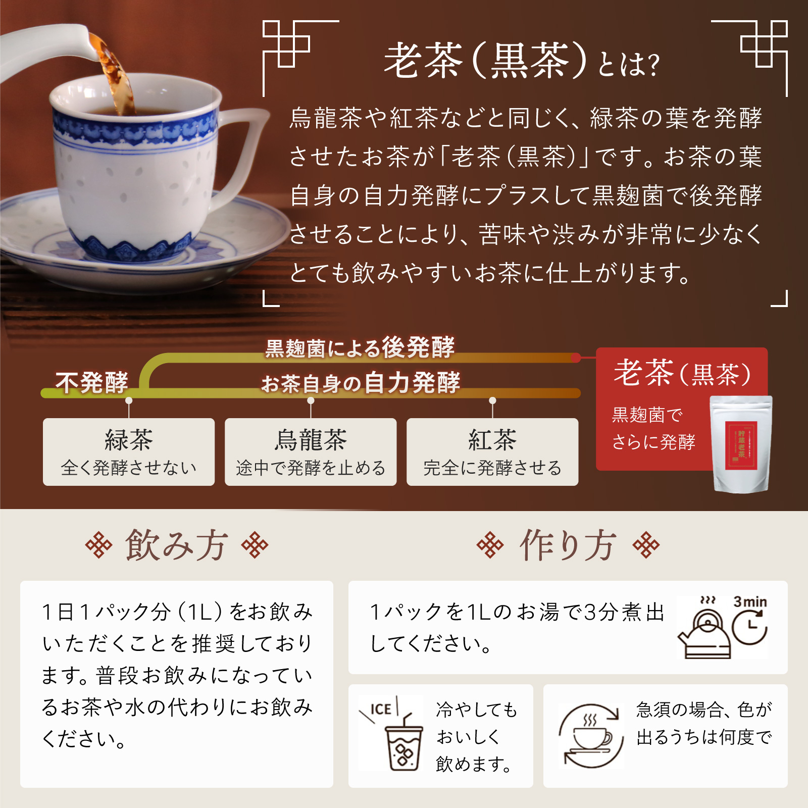 貯蔵老茶は老茶シリーズの中でも特に飲みやすく、クセの少ない味となっています。